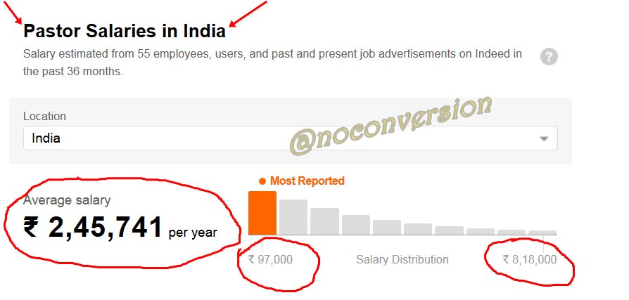Christian Pastor Missionaries get ave 2.5 Lakh salary from foreign funding or local church Can you imagine a HINDU priest getting a regular salary? 95% Hindus give less than 0.3% of their earning to HINDU cause or local temple …